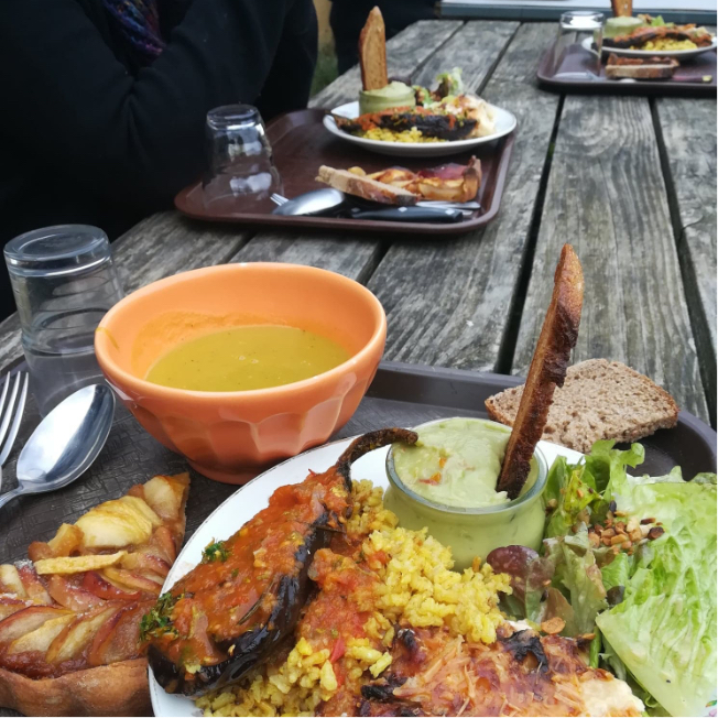 Créée en février 2019, la cantine propose des repas végétariens à partir d’invendus alimentaires bio des magasins des alentours.